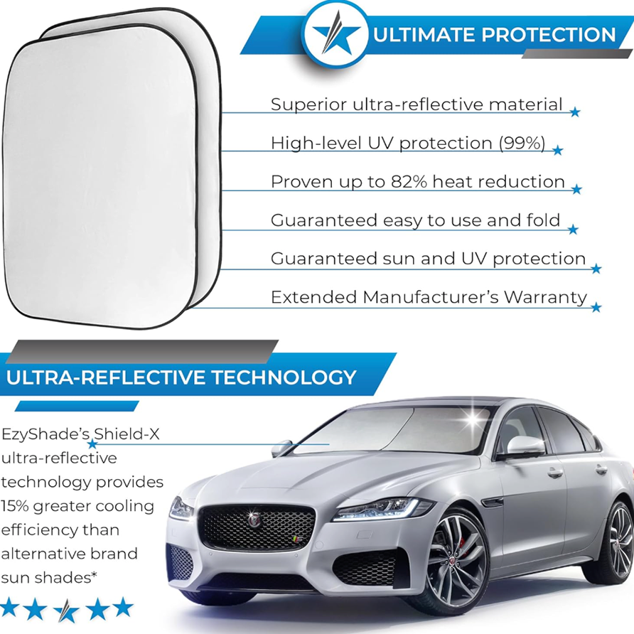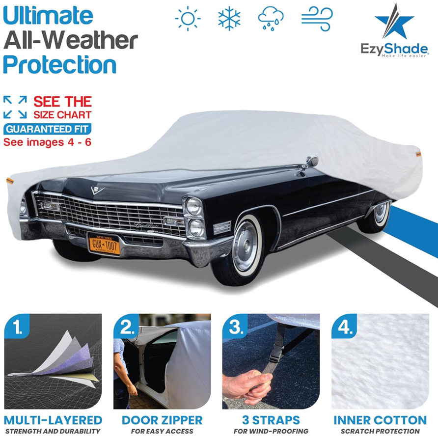EzyShade Pro Defense Foldable UV Blocker Foldable 2-piece sun shade with Shield-X technology to reflect UV rays and heat, protecting your car’s interior and reducing cabin temperature. Shop Now Waterproof Car Protector" 10-layer all-weather car cover providing waterproof, snowproof, and UV protection for full exterior vehicle safety. Shop Now EzyShade All-Weather Protection 10-layer waterproof cover designed specifically for classic sports cars, providing all-weather protection against sun, snow, and rain. EzyShade's Shield-X technology reflects sun and heat to keep your car significantly cooler and protect its interior. Reflects 95% of solar heat with advanced Shield-X technology to significantly reduce cabin temperature and prevent dashboard fading. Global Shipping Flexible Returns Secure Checkout Dedicated support