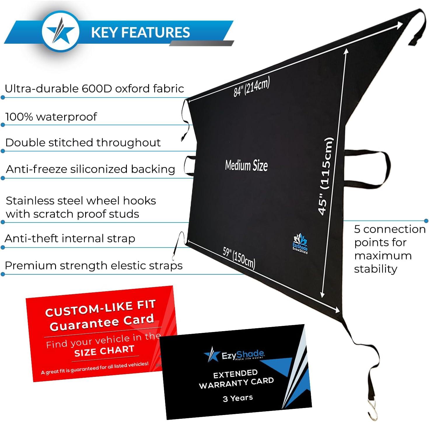 EzyShade Car Windshield Cover for Ice and Snow. Windshield Snow Cover for Car SUV Truck - Frost Shield, Snow Cover - Automotive Winter Accessories. See Size-Chart - Sports (S) Size(Standard (Medium))